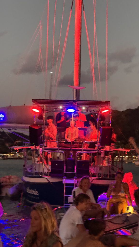Zwei Wochen verbrachten wir hier. Ausruhen, schwimmen, wandern, essen gehen und das Highlight: die Dinghy Disco von ELECTRIC PASSAGE. Lisa und Phil sind DJs und haben eine komplette DJ-Ausrüstung mit Mischpult, Partylichtern etc. an Bord. Hinter ihrem Boot macht man mit dem Dinghy fest und sonst auch mit allem was schwimmt. Ein tolles Erlebnis für die gesamte Seglercommunity.