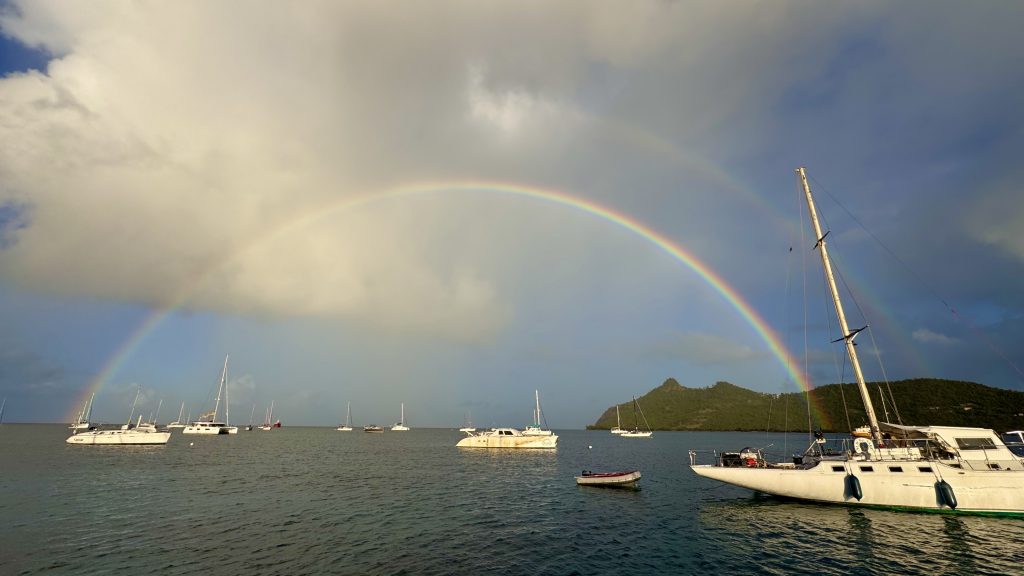 Auf Carriacou verbrachten wir ein paar Tage. Die Insel hat 2024 den Hauptteil von Hurricane Beryl abbekommen und ist immer noch stark von der Zerstörung gezeichnet. Doch die Natur lässt sich nicht unterkriegen, die Mangroven, die vor einem Jahr noch braun waren, werden langsam wieder grün.