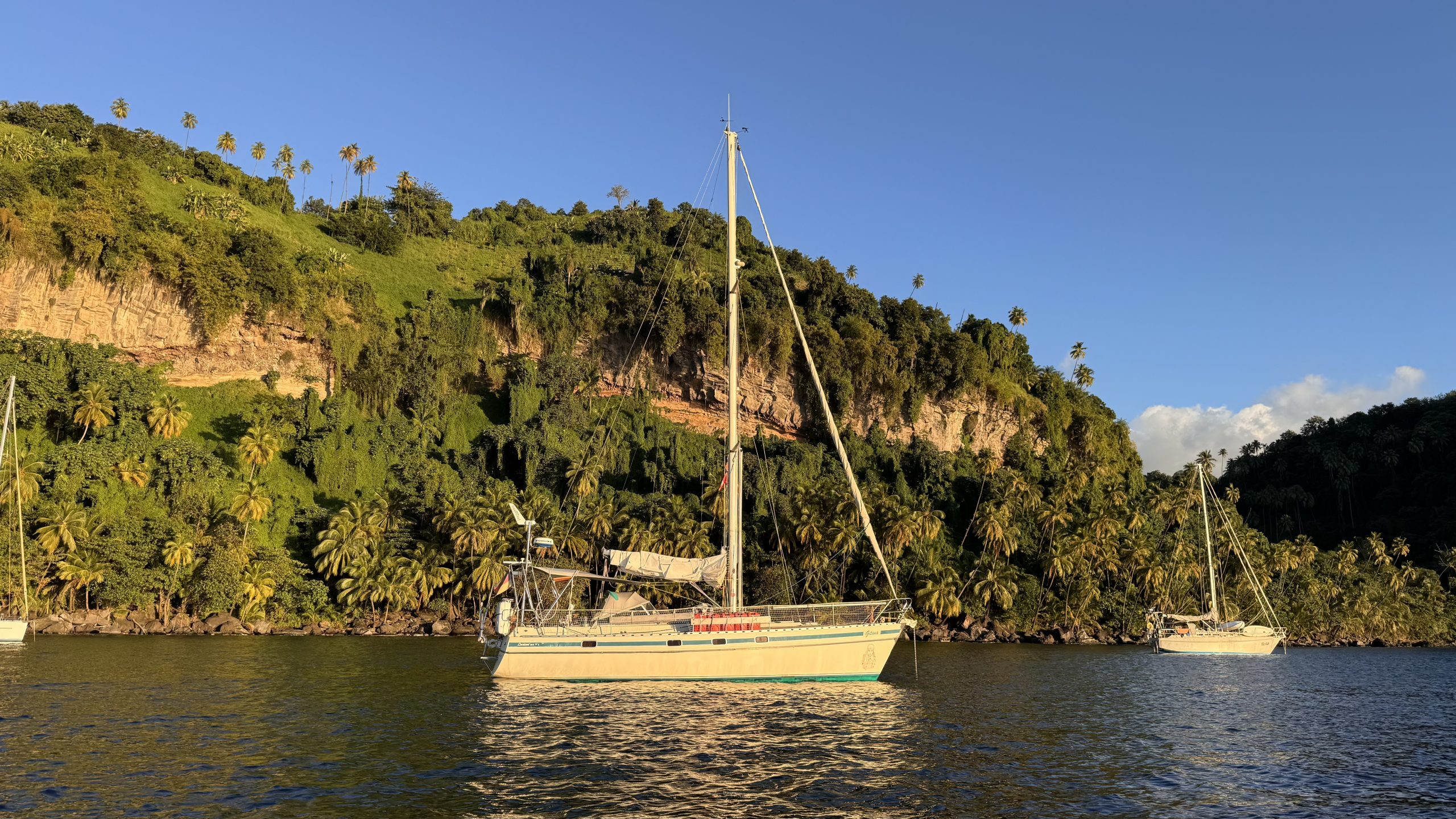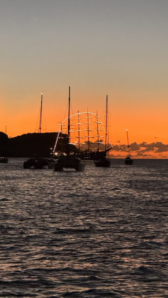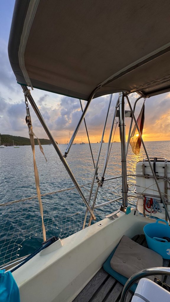 Am folgenden Tag ging es also weiter zum nächsten Sehnsuchtsziel: Bequia, wo wir mit etlichen, befreundeten Yachten Weihnachten feiern wollten und wo dann auch Ben mit seiner neuen SANCTUARY dazukam. Er hatte auf Grenada noch auf Ersatzteile warten müssen. Auf Bens alter SANCTUARY, einer Catalina 400, durfte ich einen Monat wohnen, während GITANA auf dem Trockenen stand und eine unbewohnbare Baustelle war. Bequia spricht man übrigens „Bek-way“ aus, doch das nur als Info am Rande 🙂